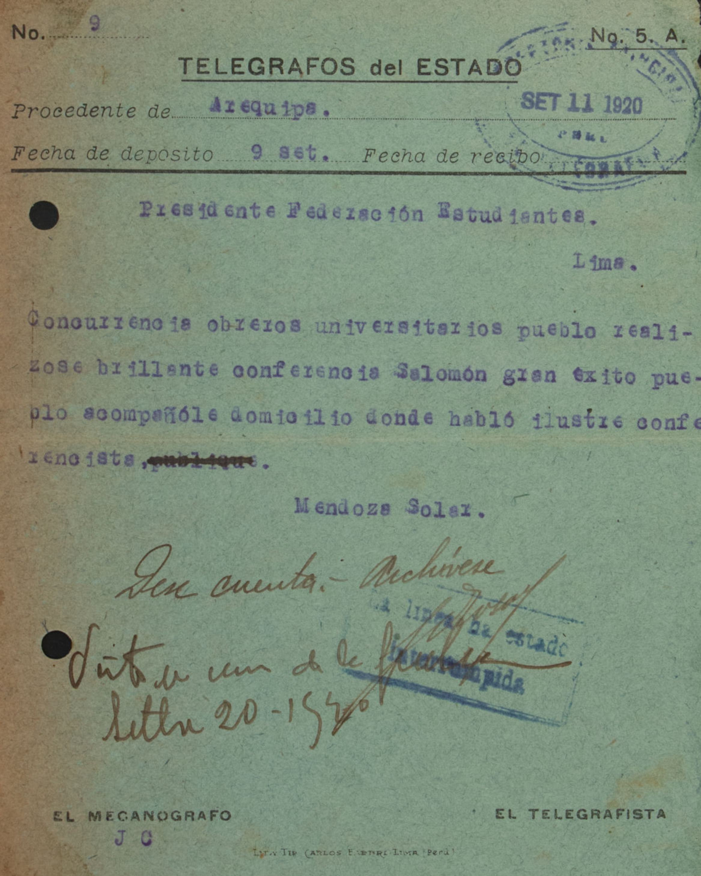 Este documento presenta la nómina del personal directivo del Centro de Señoras de Tacna, Arica y Tarapacá, fundado el 24 de diciembre de 1918, para el año social 1919-1920. La junta directiva incluye a Isabel Ugarte y Timotea de Vernal y García como presidentas honorarias, mientras que Zoila Sabel Cáceres ocupa el cargo de presidenta activa. Otras posiciones clave son ocupadas por Ninfa vda. de Ardiles, Elvira O. de Morante, Raquel Zavala O., y Hilda Ardiles. El documento también menciona una delegación en el Callao, con Teresa M. de Claros como presidenta. Las reuniones generales se realizan el segundo domingo de cada mes y las directivas el primer y tercer sábado.