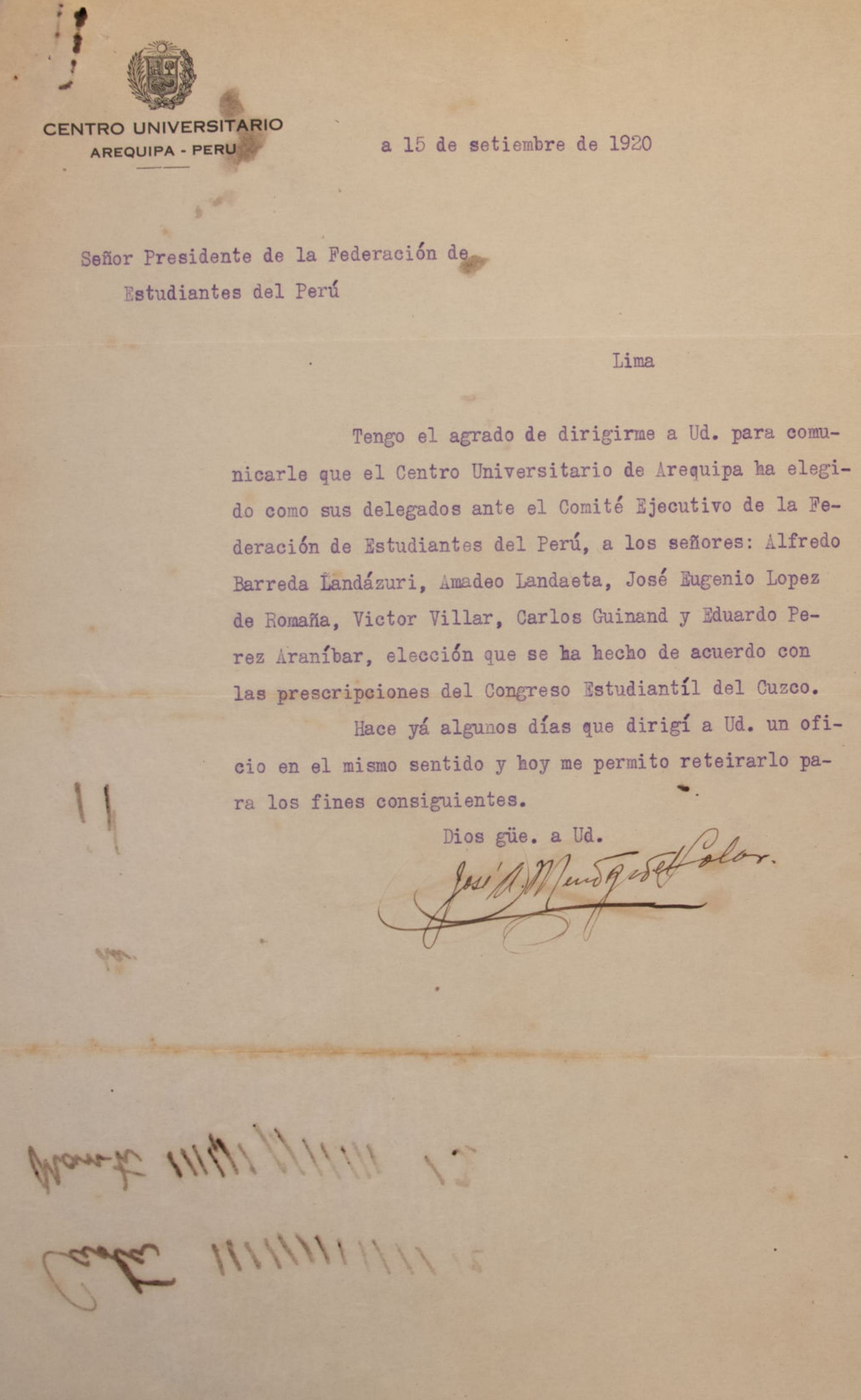 Comunicación de elección de delegados del Centro Universitario de Arequipa