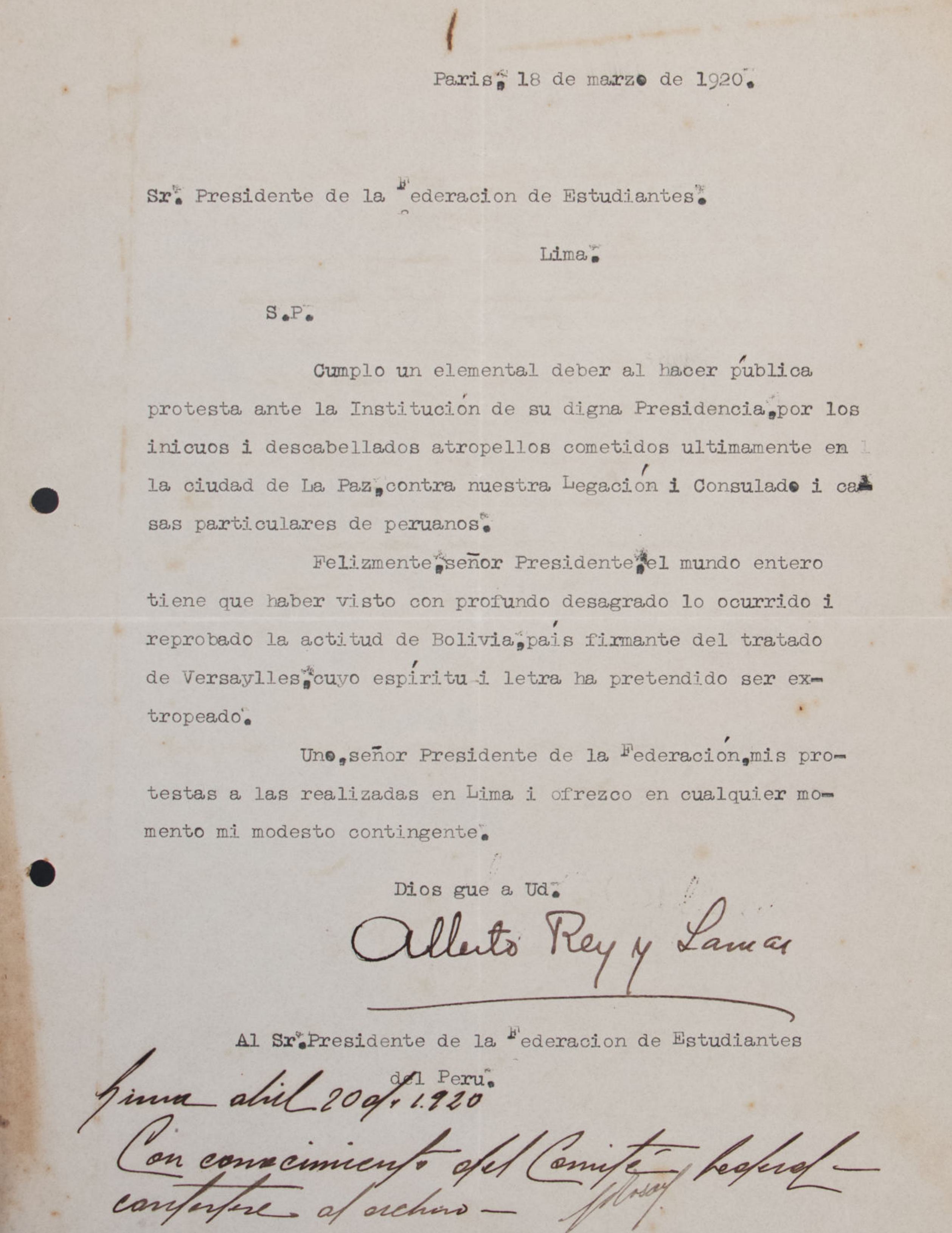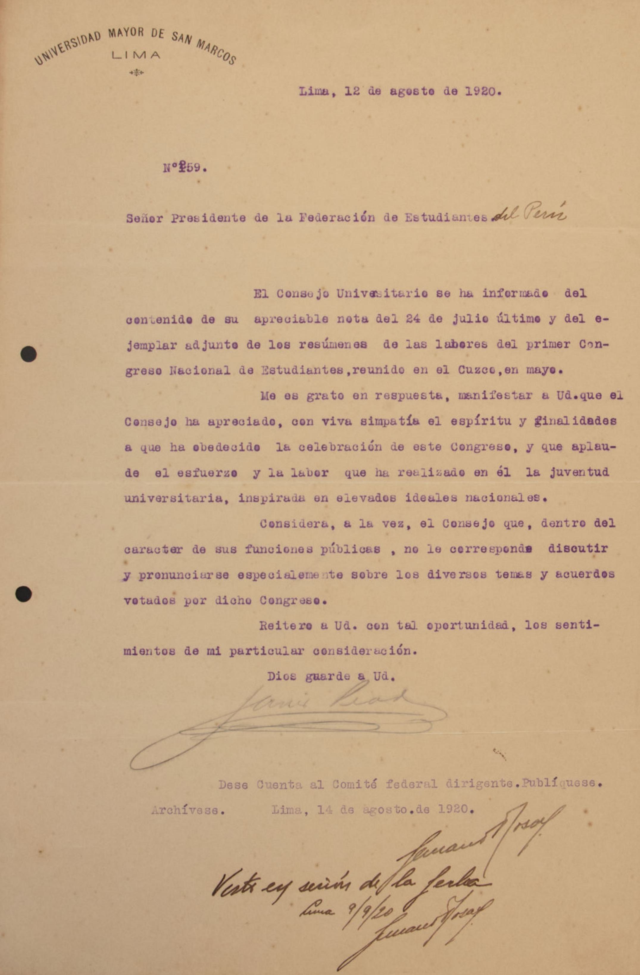 Se informa que el Dr. Antonio Sagarna, ministro plenipotenciario de la República Argentina en el Perú, ha manifestado su deseo de promover el intercambio de profesores entre ambos países y busca el respaldo de las corporaciones juveniles.