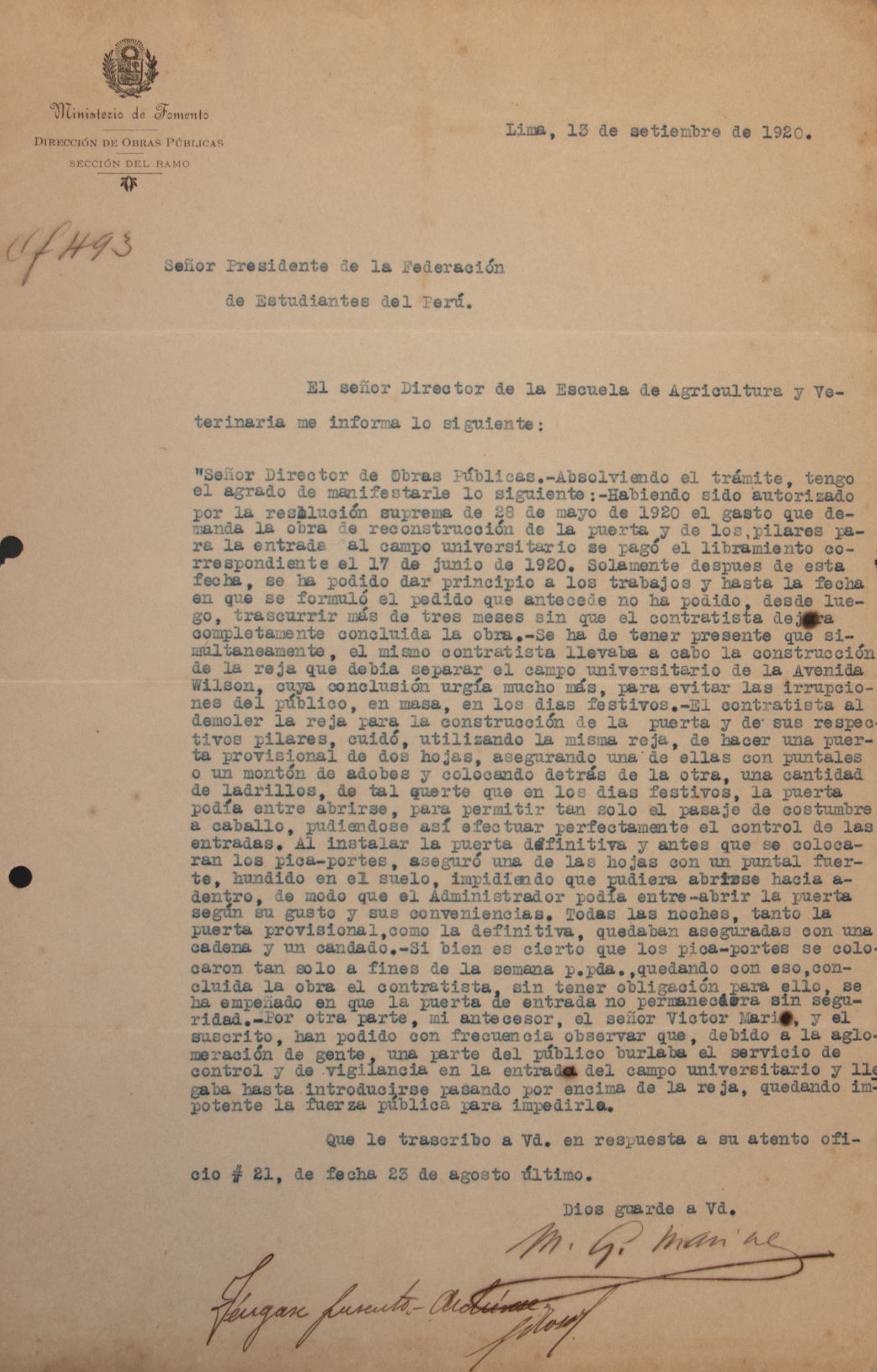 Carta en la que E. Zegarra, candidato a la presidencia del Centro Universitario de Arequipa, solicita formalmente al presidente de la primera mesa receptora de sufragio que acepte la acreditación de Carlos de la Barra como su adjunto en la mesa. La petición se realiza con el fin de asegurar representación durante el proceso electoral.