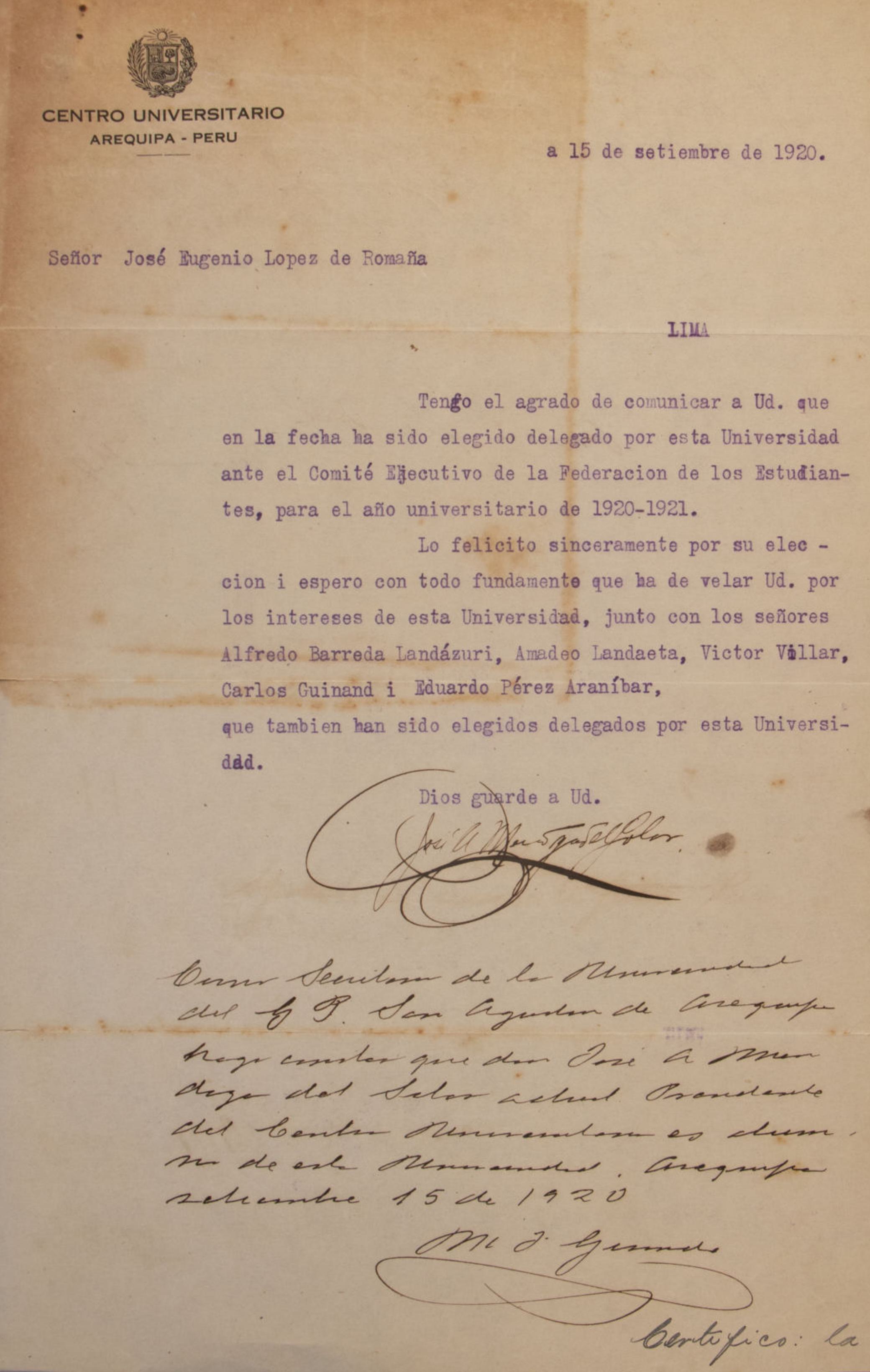 Comunicación de Lorenzo Zelada, presidente de la Liga Patriótica Anti-Asiática, al presidente de la Federación de Estudiantes del Perú, solicitando el uso del local de la federación para realizar una conferencia a cargo de Félix Zárate. La conferencia abordaría tópicos científicos relacionados con los ideales nacionalistas de la liga, con el objetivo de dar a conocer su memorial próximo a presentarse ante la Cámara de Diputados.