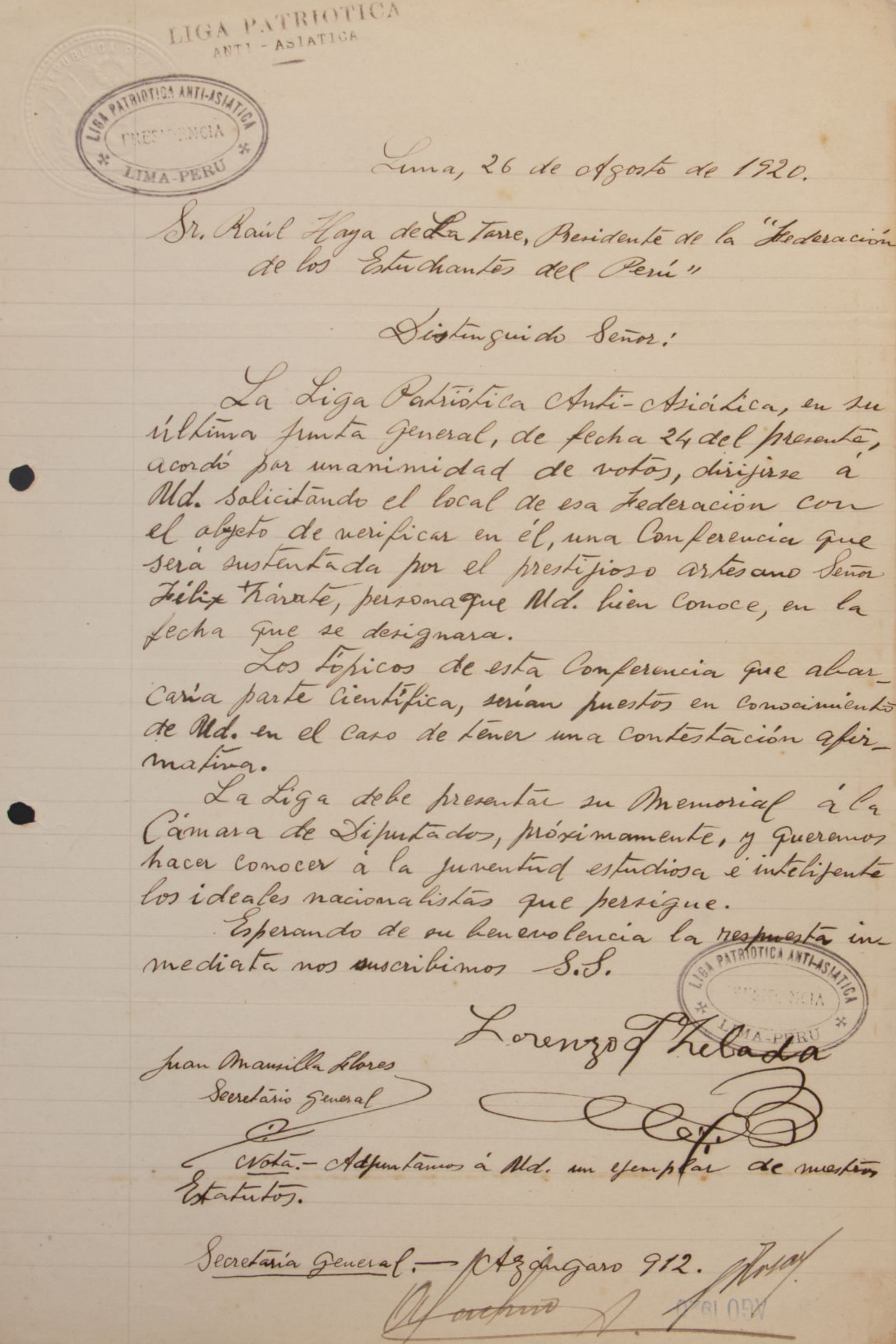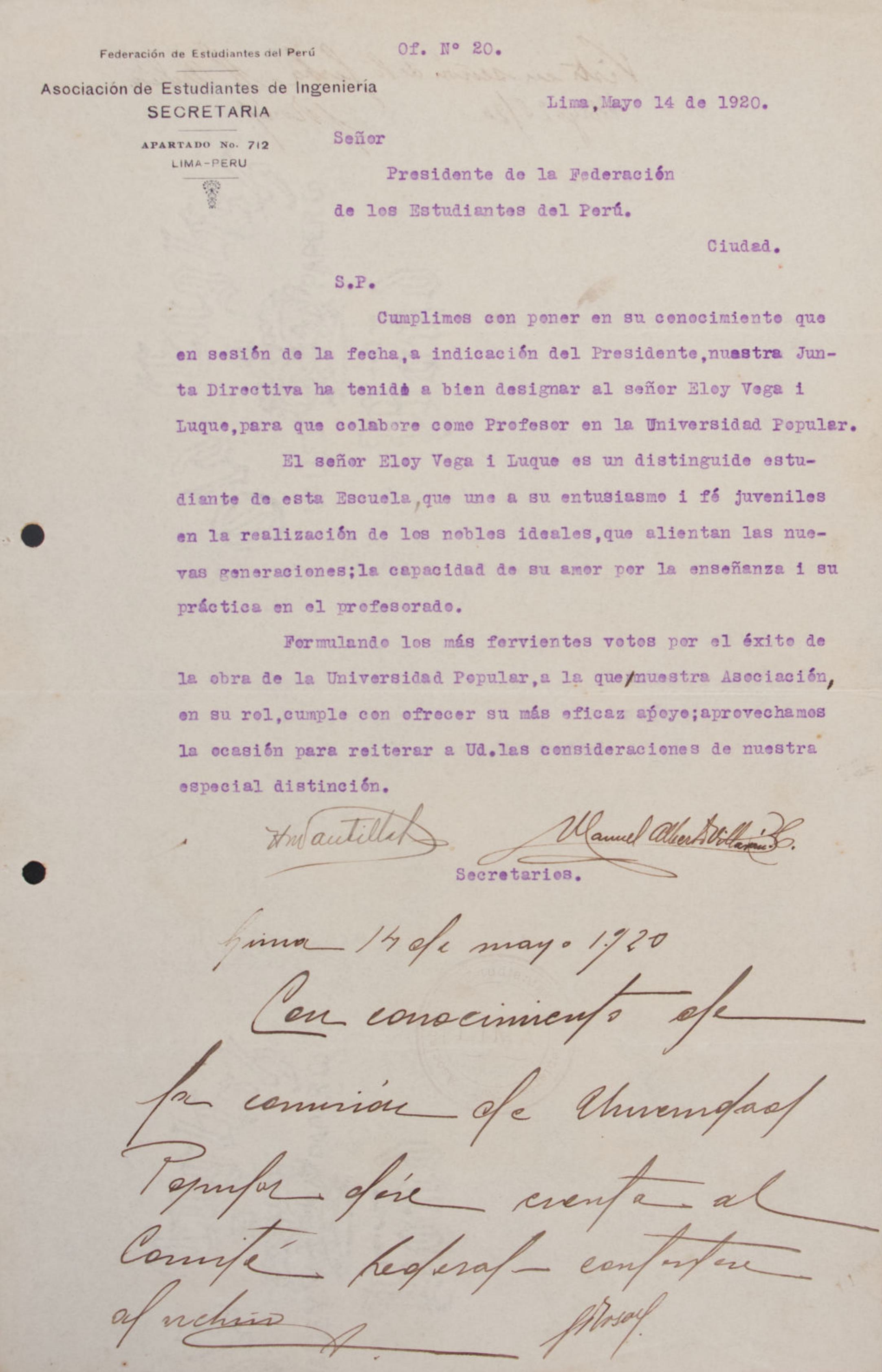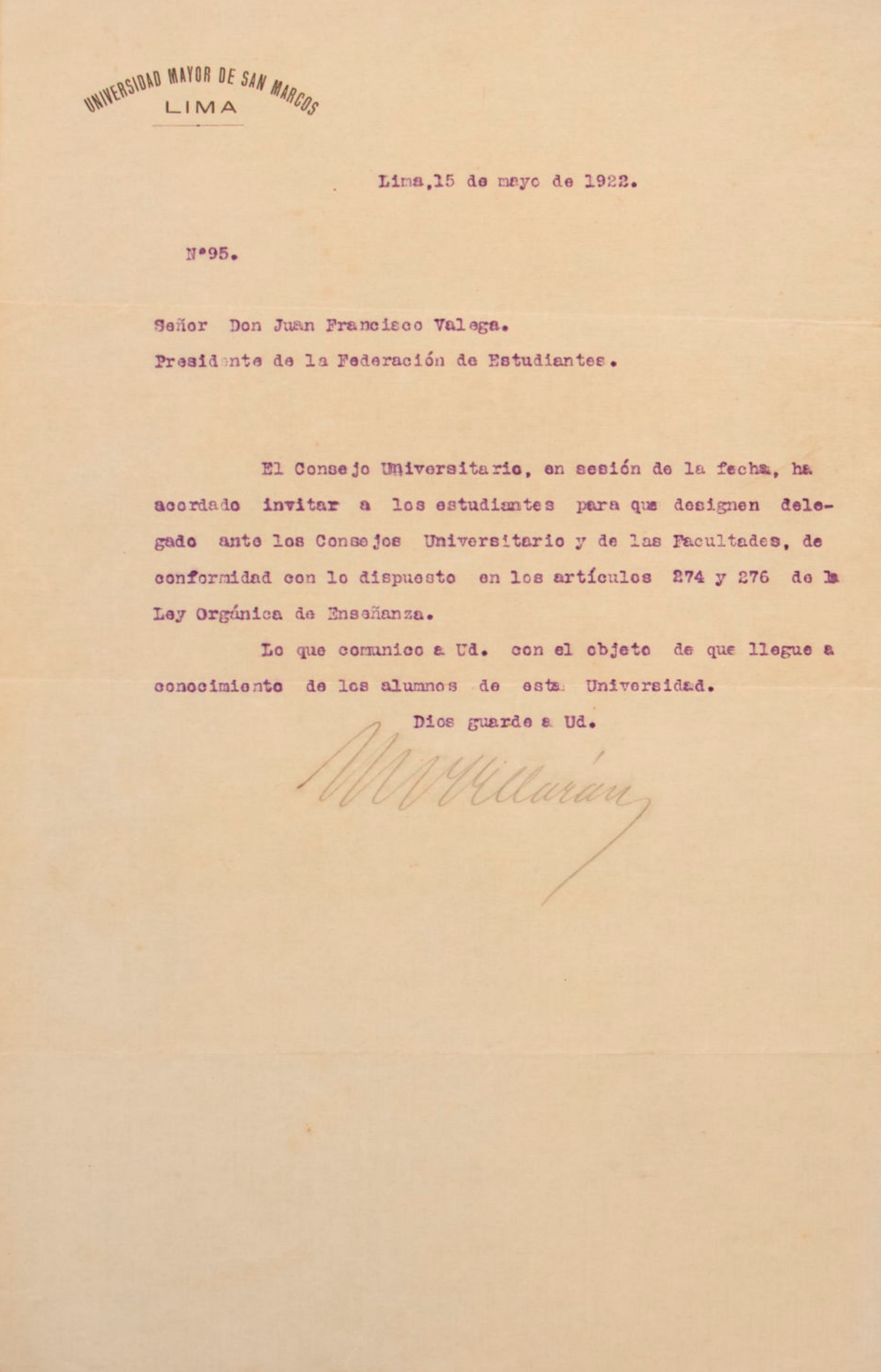 Álvaro acusa recibo de un oficio de la federación, informando que en la sesión de la junta directiva se acordó convocar asambleas para las facultades de Filosofía y Letras y de Jurisprudencia los días 6 y 7, respectivamente, cuyos resultados se informarán posteriormente. Asimismo, notifica la recepción de 20 ejemplares del reglamento para el próximo Congreso Nacional de Estudiantes, los cuales han sido distribuidos entre los alumnos.