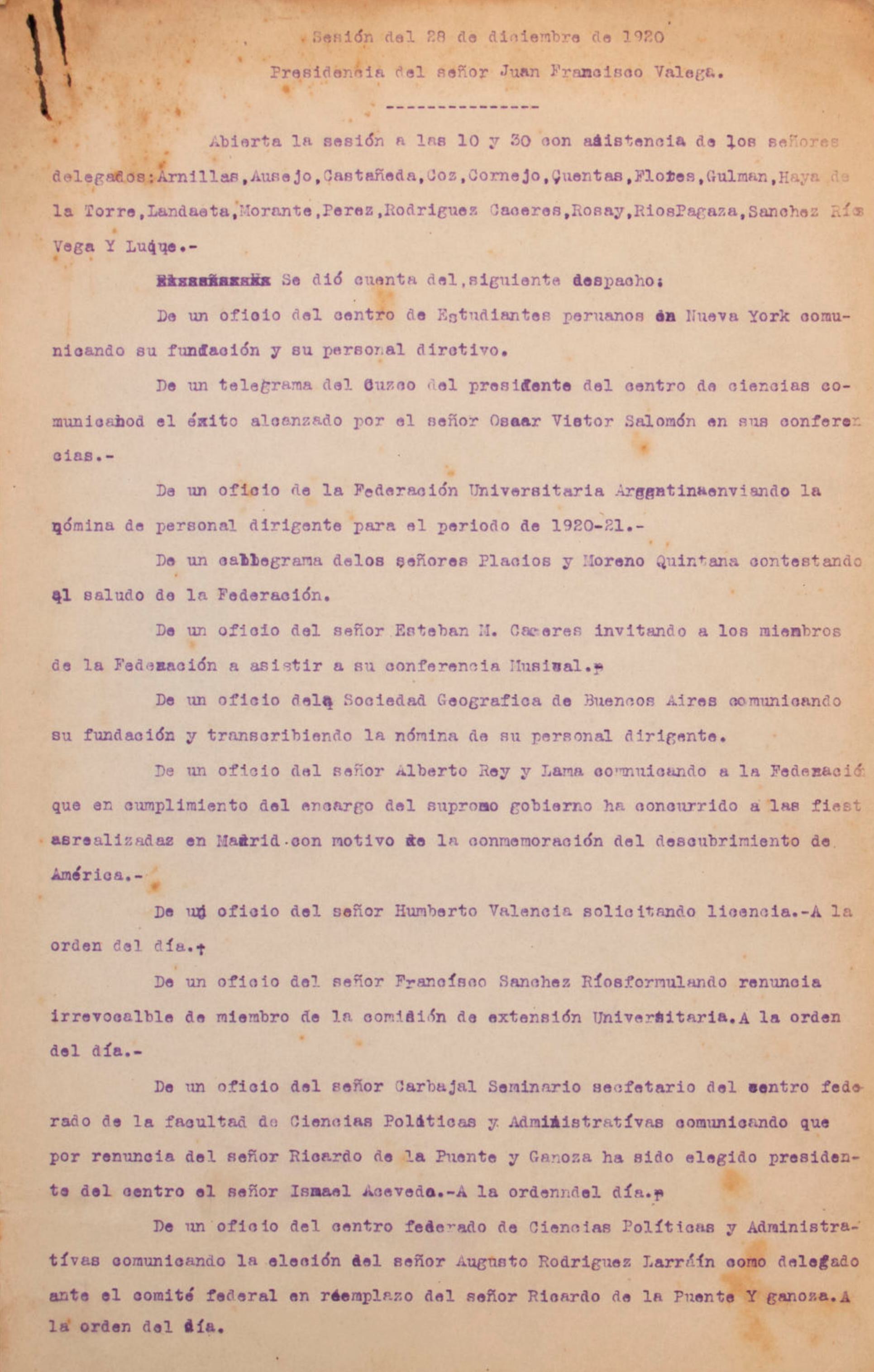 Telegrama enviado por José A. Mendoza Solar, presidente del Centro Universitario de Arequipa, al presidente de la Federación de Estudiantes del Perú. Informa sobre la constitución de una iniciativa prodesarrollo económico del Perú, liderada por el cónsul Óscar Salomón. El evento fue presidido por el obispo y el presidente de la Corte Superior, con la asistencia de universitarios, periodistas, obreros y una numerosa concurrencia. Durante la instalación, Salomón pronunció un destacado discurso y se nombró una comisión para intensificar la propaganda del Perú en el extranjero.