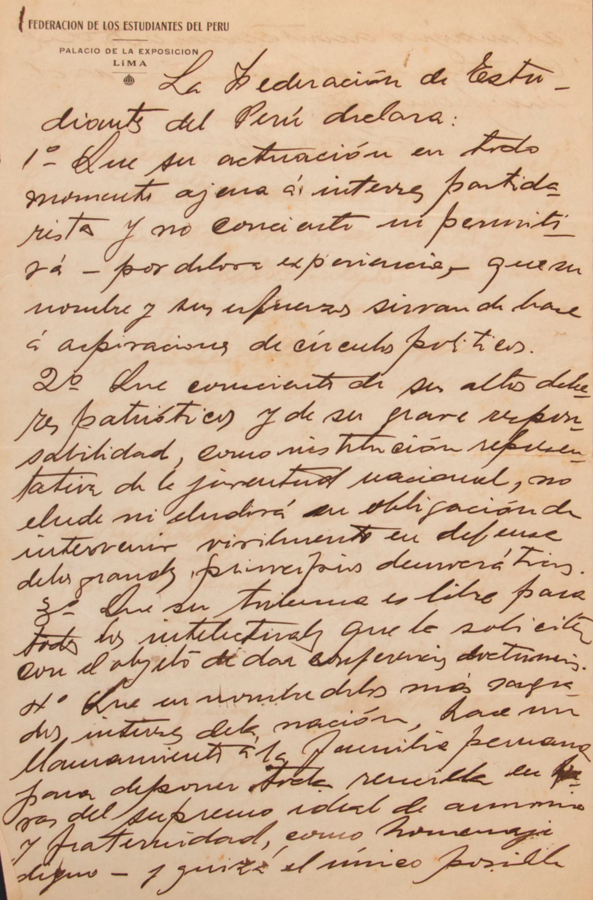 Comunicación en la que Juan Mariano Velasco, presidente del Centro de Estudiantes de la Universidad Católica, informa al presidente de la Federación de Estudiantes del Perú que no ha emitido ningún oficio adicional desde la comunicación oficial de los resultados de las elecciones de sus nuevos delegados. Este mensaje busca aclarar un posible malentendido en relación con un oficio leído en la sesión de la federación el día anterior.