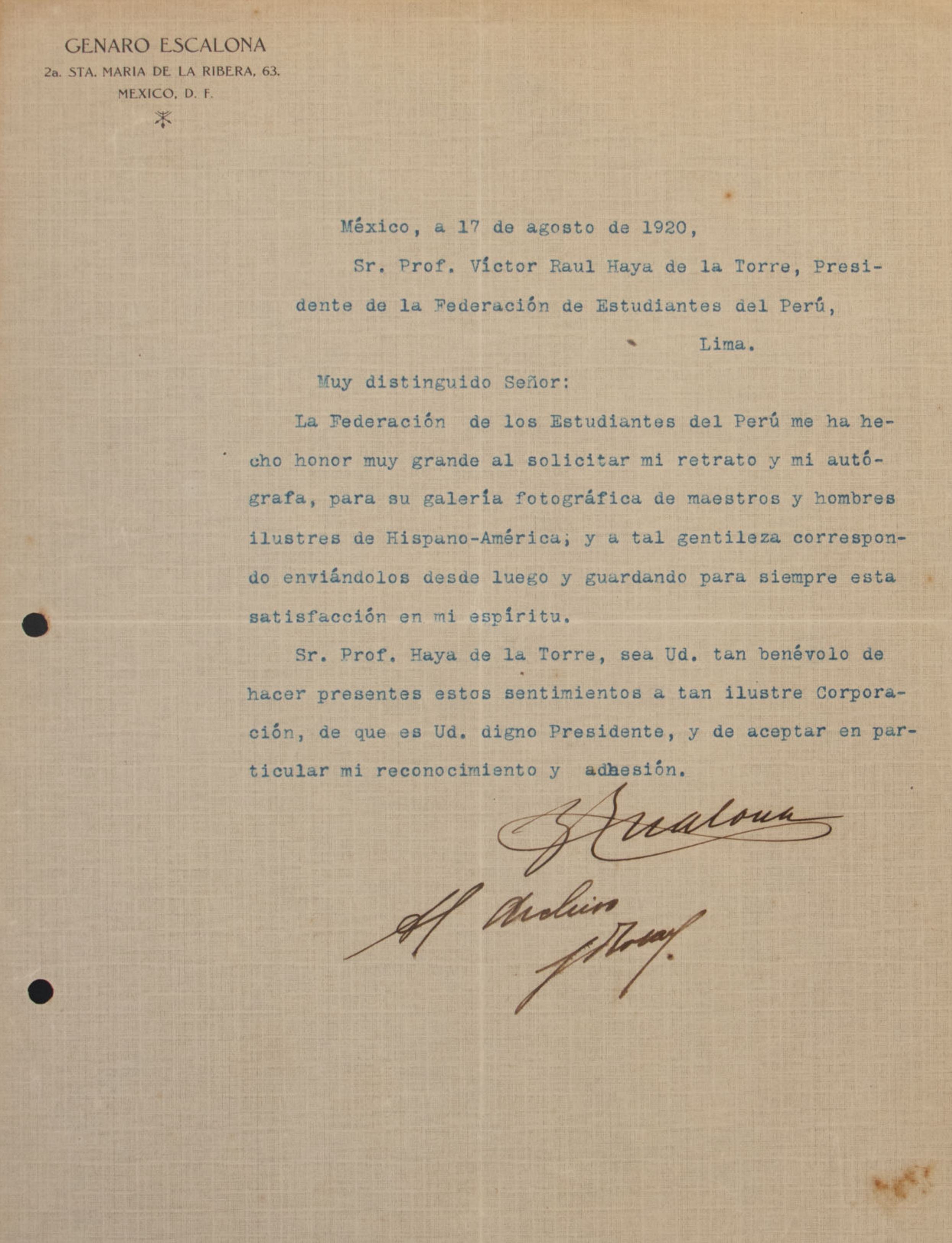 La Agrupación Juventud Intelectual de Cerro extiende un saludo en conmemoración del día de la juventud a la Federación de Estudiantes del Perú, destacando la importancia de la solidaridad como base de todo progreso. Firman el mensaje Herminio Cáceres, presidente, junto a otros miembros de la agrupación.