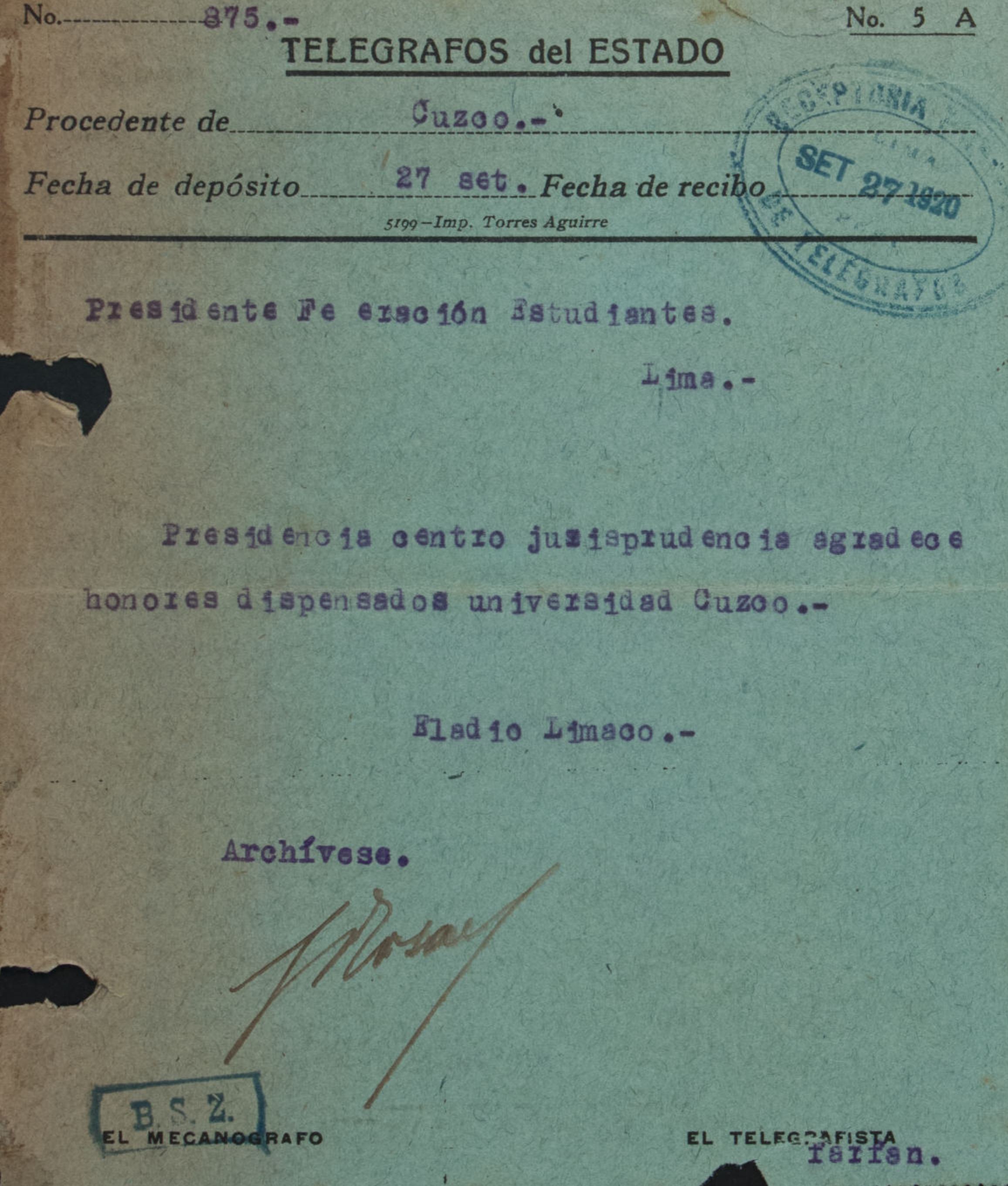 Carta enviada desde Lima el 4 de noviembre de 1920 por el presidente del "Tennis Club" del Banco del Perú y Londres al presidente de la FEP. En ella, el remitente solicita una licencia para utilizar el terreno de la Federación en los campos de Santa Beatriz los sábados por la tarde. Expone que el club está organizando torneos de fútbol como parte de su campaña deportiva, con el objetivo de formar la futura Liga Bancaria de Juegos Atléticos. Asegura que el acceso al terreno será restringido a empleados de bancos y sus familias, así como a los representantes de la FEP.