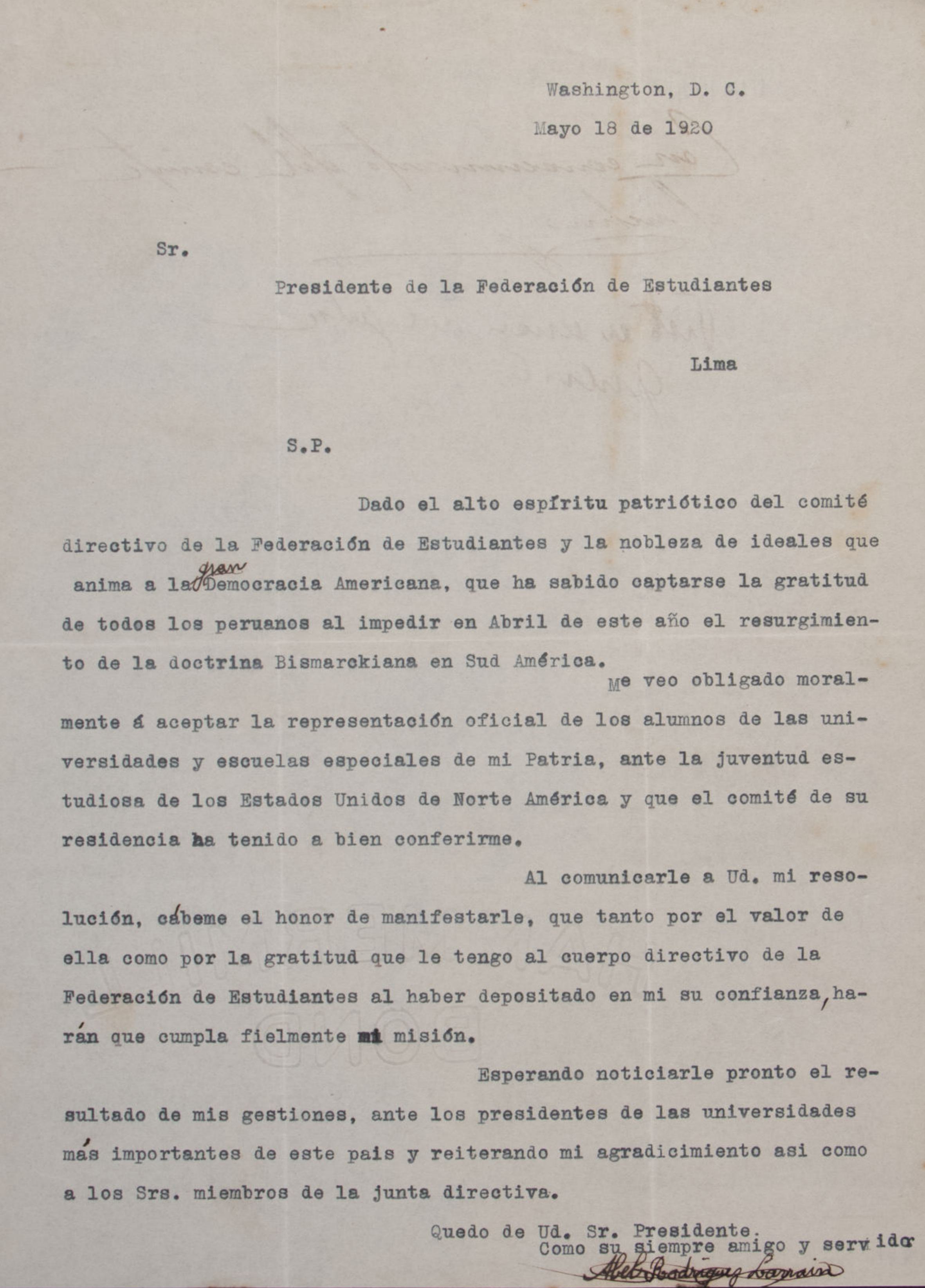 La carta, fechada el 9 de enero de 1920 y dirigida al presidente de la Federación de Estudiantes del Perú, fue enviada por Fernando Zevallos en nombre de la Federación Textil del Perú. En ella, se solicita el uso del local de la federación para realizar, el 13 de enero a las 8 p.m., una asamblea en apoyo a la campaña por la jornada laboral de 8 horas, una causa impulsada por el proletariado peruano.