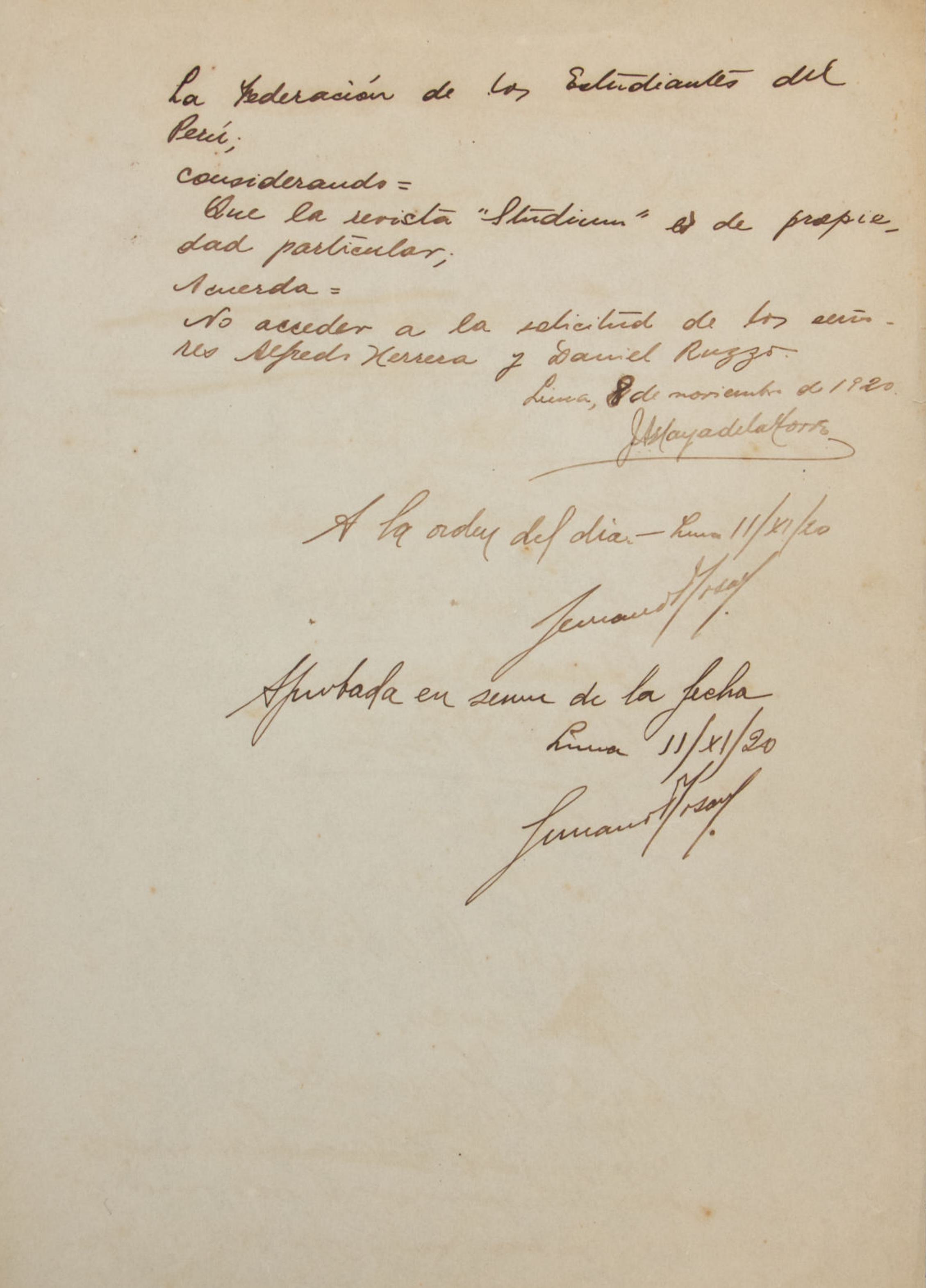 Este oficio, dirigido al rector y redactado como parte de una comisión del consejo, aborda una solicitud de la Federación de Estudiantes del Perú (FEP) sobre la administración del campo deportivo de Santa Beatriz.