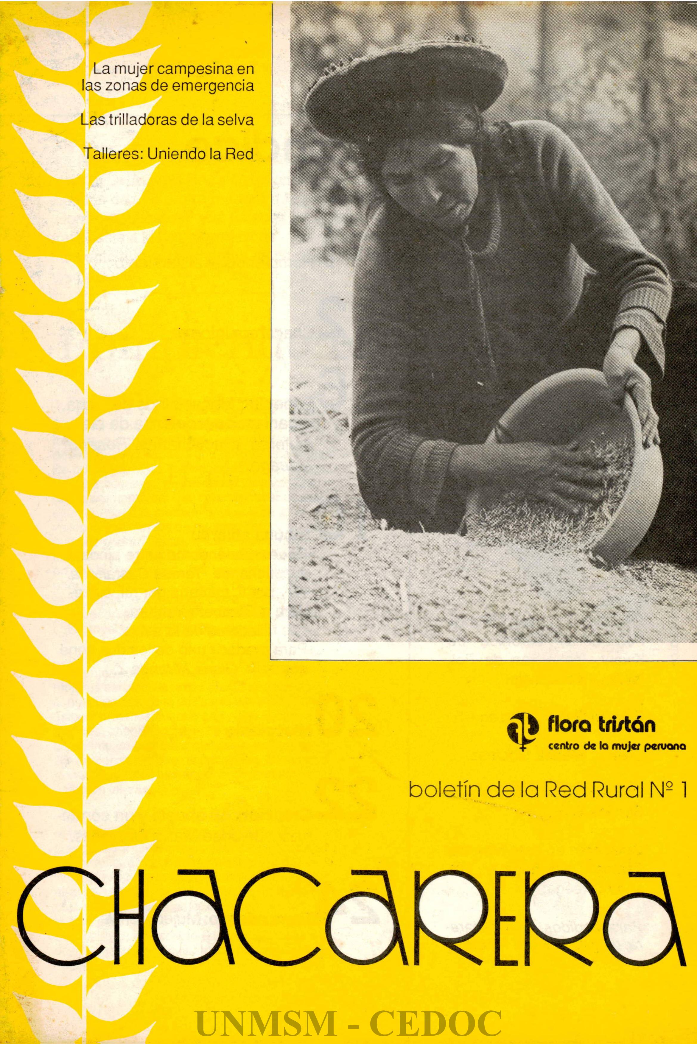 | dc.description.tableOfContents | Rompiendo el aislamiento, p. 1.-- Chacarera informa, p. 2.-- Especial: Mecanismos de lucha, organización y defensa de las mujeres ayacuchanas / por Urteaga, Rosario, p. 6.-- Redescubriéndome entre niños ayacuchanos / por Castañeda, Teresa, p. 10.-- Hoy por ti, mañana por mí / por Van de Pol, Ineke, p. 12.-- Las trilladoras de la selva, p. 14.-- Para producir uno de los dos tiene que salir / por Miranda, Gloria, p. 16.-- Miscelania, p. 20.-- Mi abuela y un condenado, de José María Arguedas, p. 22.-- Tierra adentro: Mujer y Crisis, p. 24 |