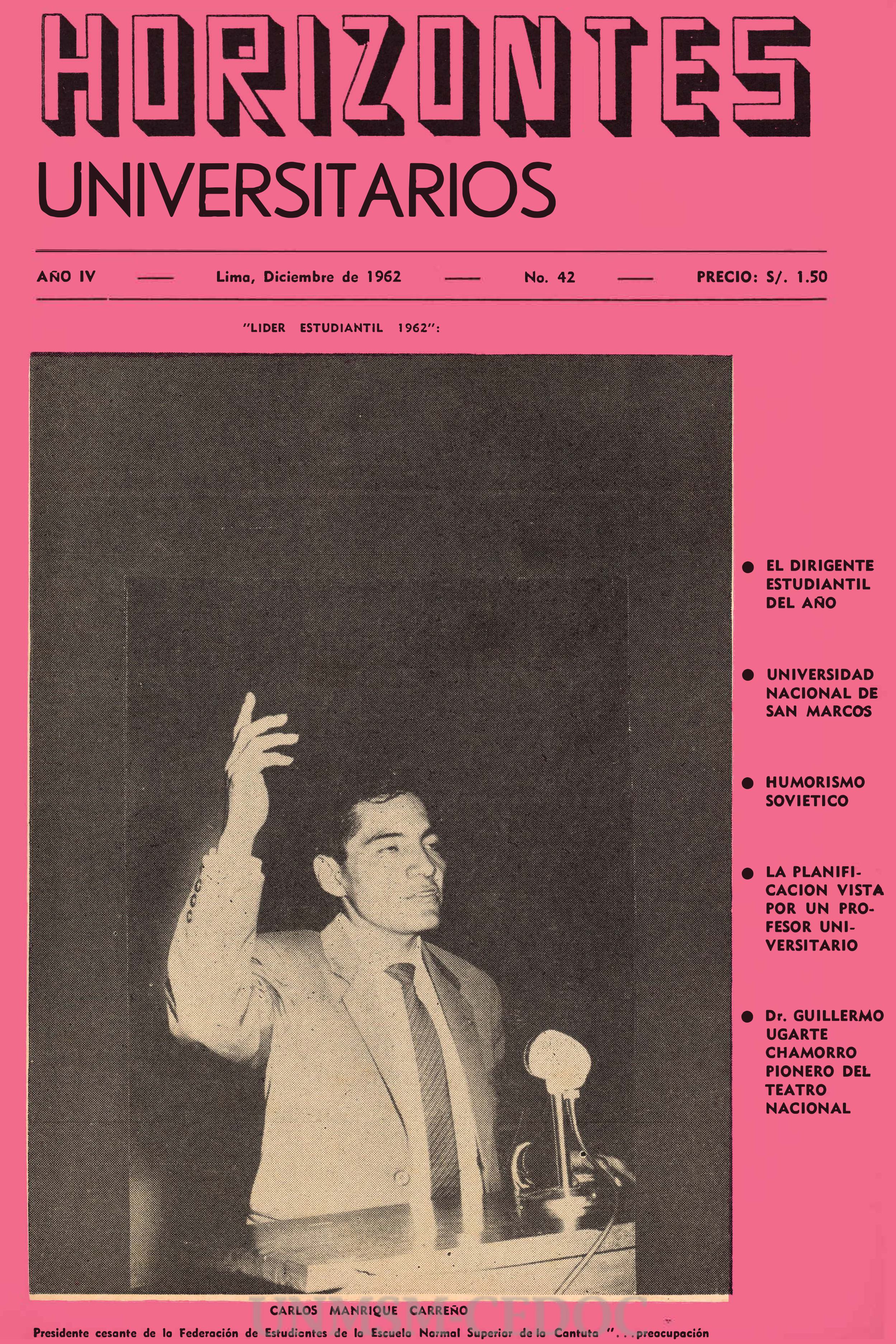 | dc.description | El dirigente estudiantil del año Universidad Nacional Mayor de San Marcos Humor soviético La planificación vista por un profesor universitario Dr. Guillermo Ugarte Chamorro pionero del Teatro Nacional |