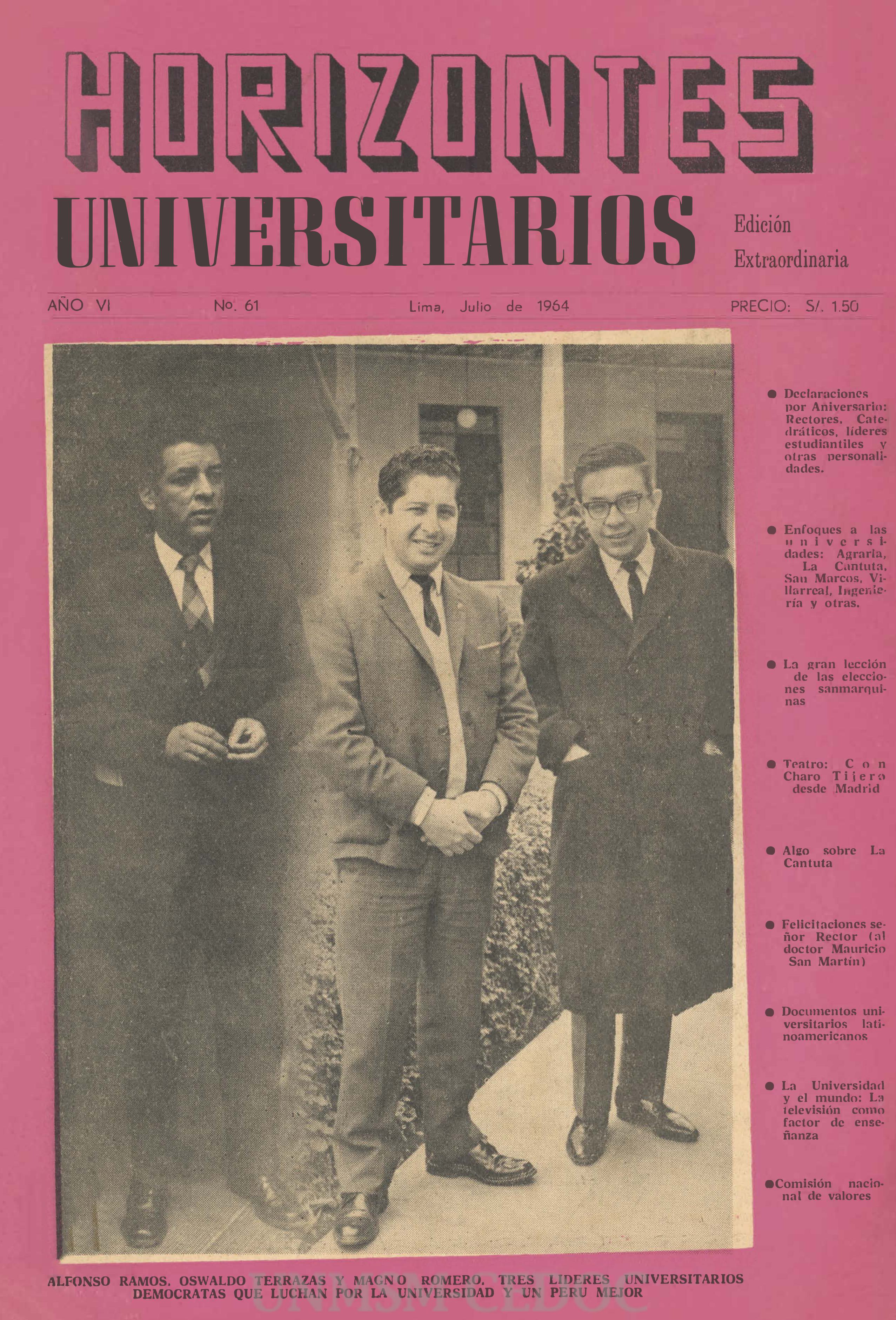 Publicación periódica de 1964, que contiene artículos de política y realidad nacional realcionado con las principales universidades del Perú